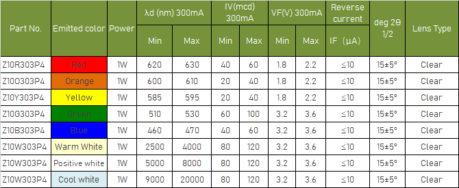 Queendom Light offer many kinds of mid/high power LEDs which are categorized by Forward (driven) Current, Flux,Wavelength and viewing angle